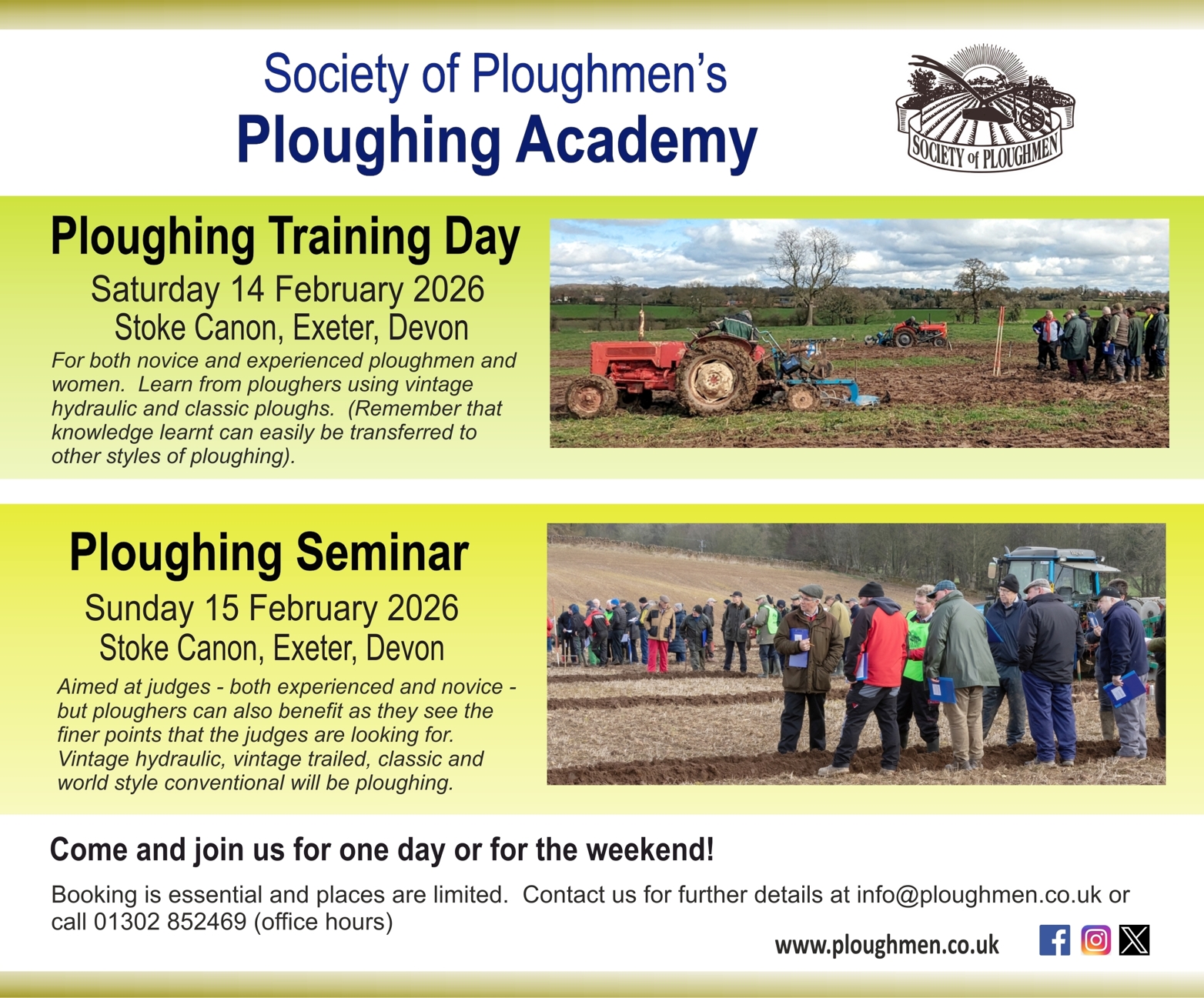 As part of the Ploughing Academy, the Society of Ploughmen will be organising a Training Day for ploughmen and women.